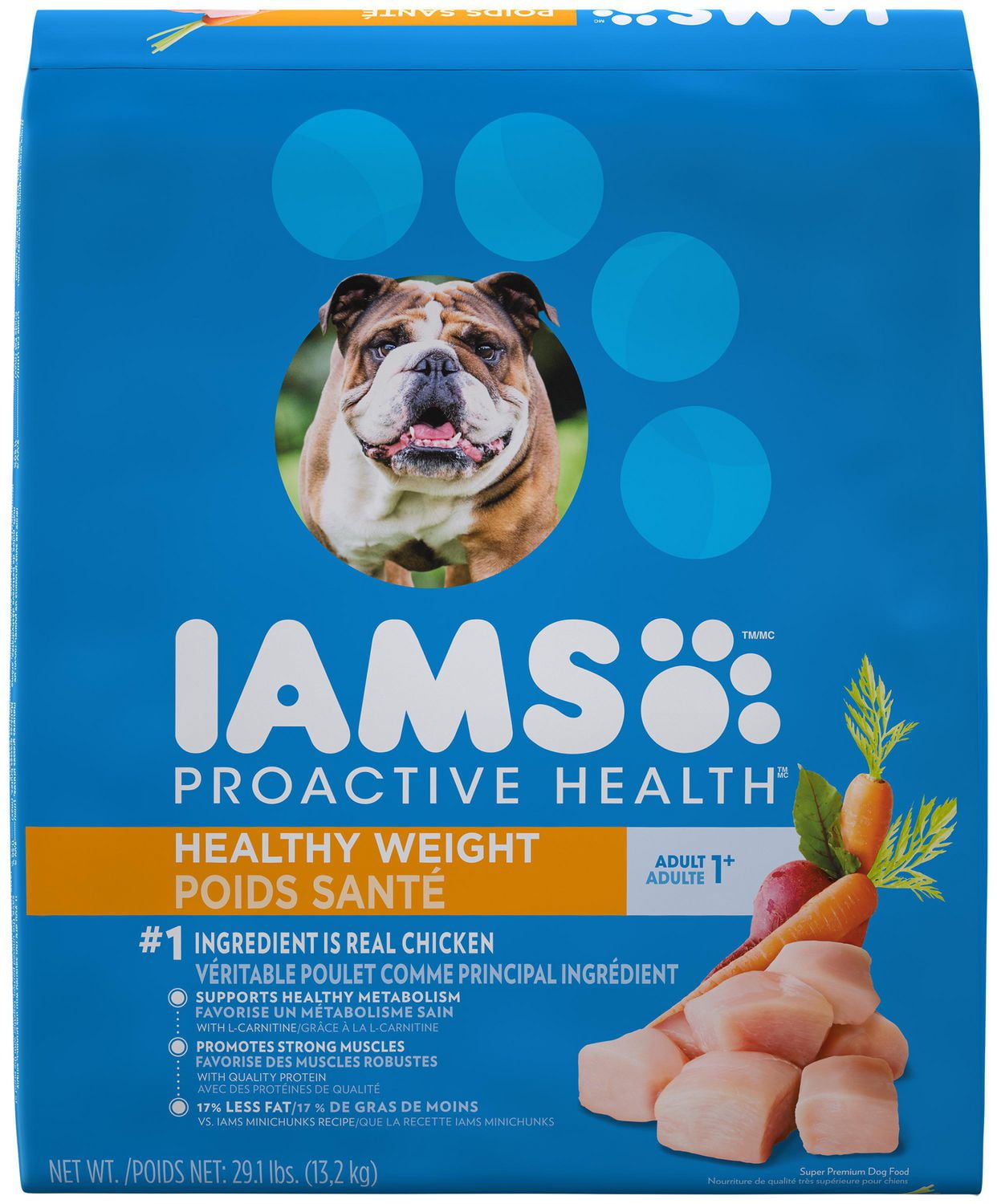 Like so many other weight management dog foods iams proactive health adult weight control appears to lower its caloric content by reducing its animal based ingredients and raising the fiber.