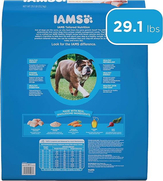 That s why we ve crafted our iams healthy weight recipe with fewer calories and less fat and added l carnitine to help burn fat and return your dog to a healthy weight.