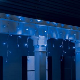 Clear white and blue icicle lights including new combination blue and white hues together on the same light string are the top choice for many christmas decorators.
